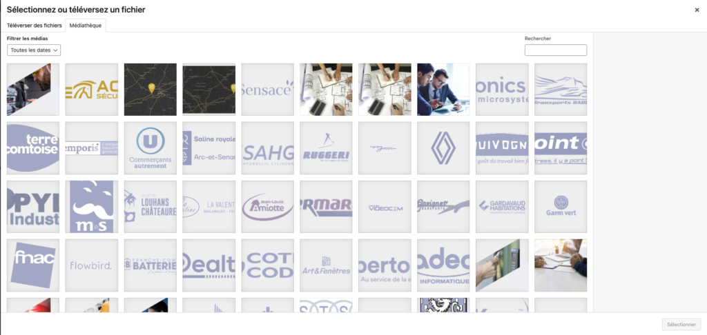 Vous avez ici un aperçu des fichiers présents dans votre médiathèque. Vous pouvez sélectionner celui que vous souhaitez, ou faire une recherche par nom.