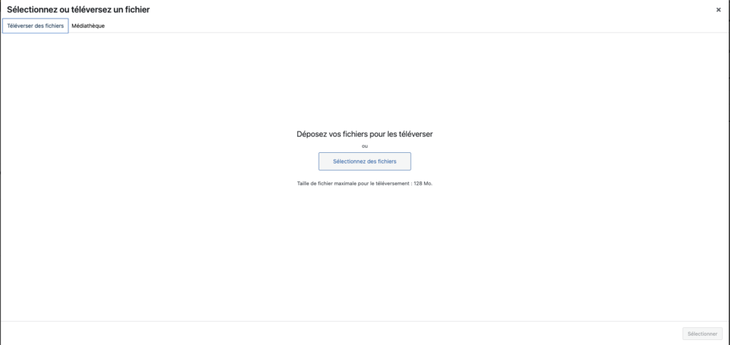Si vous n’avez pas encore téléversé le fichier dans votre médiathèque, vous pouvez le faire dès maintenant en glissant-déposant vos fichiers dans cette fenêtre.